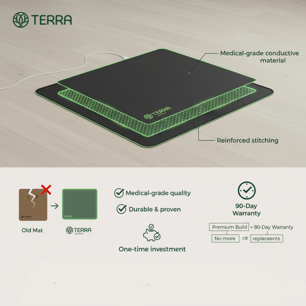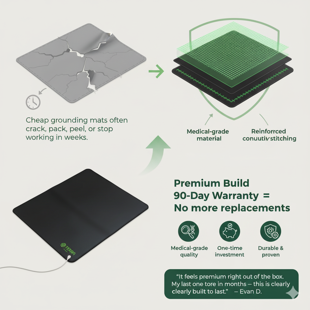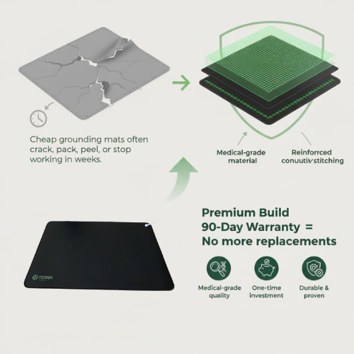 Cheap grounding mats often crack, peel, or stop working in weeks. This one uses medical-grade conductive material and reinforced stitching, backed by a full 90-day guarantee.