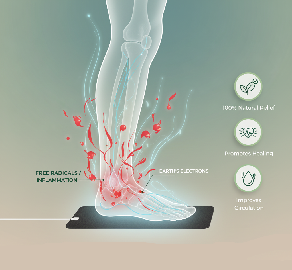 Most chronic nerve pain (sciatica, neuropathy, joint pain) comes from free-radical inflammation. Grounding neutralizes those free radicals using Earth’s negative electrons — a natural anti-inflammatory effect measured at the cellular level.
